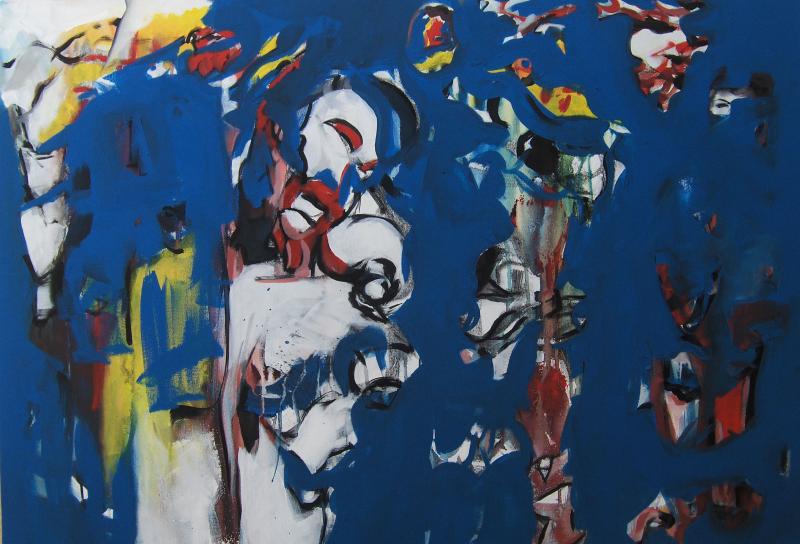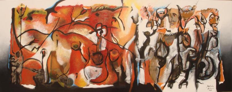 Acrílico s/papel, colado em tela de Arraiolos, 90 X 120 cm, 2017